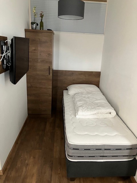 ) en een mooie woon/slaapkamer met een 2persoonsbedbank of 2 aparte bedden) een comfortabele badkamer voorzien van toilet wastafel en inloopdouche. Er is vloerverwarming in de gehele suite ( geen kookplaten).. parkeerplaats in de garage.